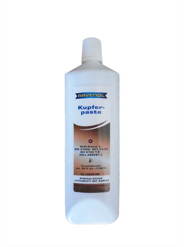 RAVENOL Kupferpaste это твердая смазка, изготовленная в Германии с применением медного порошка и добавлением комплекса противоизносных и антикоррозионных присадок. Используется для смазывания строительных, монтажных элементов, которые эксплуатируются при высоких нагрузках, сильном сжатии и под влиянием коррозионно-активных веществ.