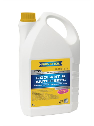 RAVENOL TTC — Protect C11 Concentrate – охлаждающая жидкость концентрат на основе этиленгликоля, не содержит нитриты, амины, фосфаты. Обеспечивают долговременную (до 3 лет) антикоррозионную защиту всех металлов, присутствующих в двигателе, включая алюминий и различные сплавы.